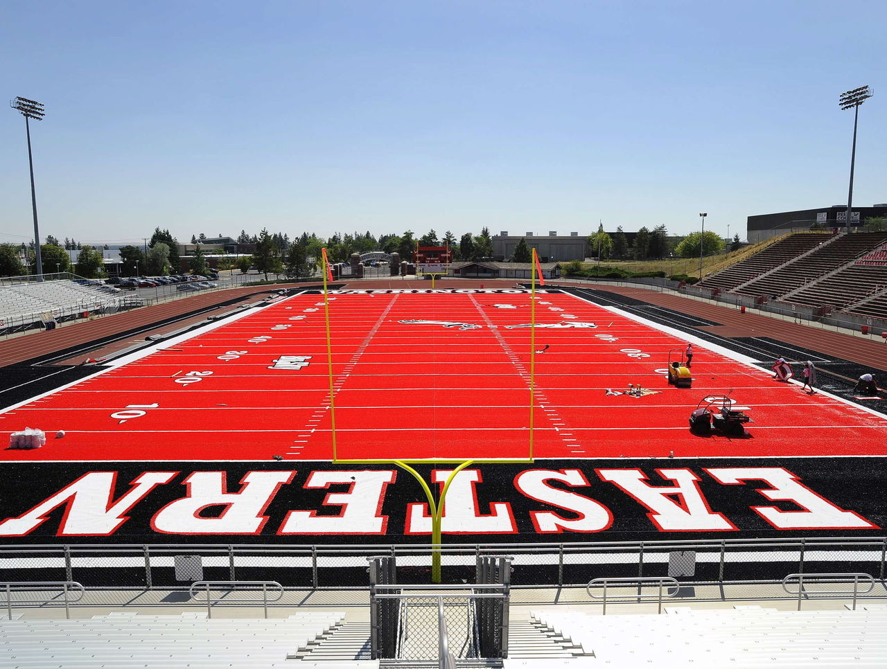 Roos Field (formerly Woodward Field) has undergone a couple of renovations since it first opened in 1967. Most notably, the program pushed for a switch from a traditional green playing surface to red turf for the 2010 season. This is how they do in the Pacific Northwest.