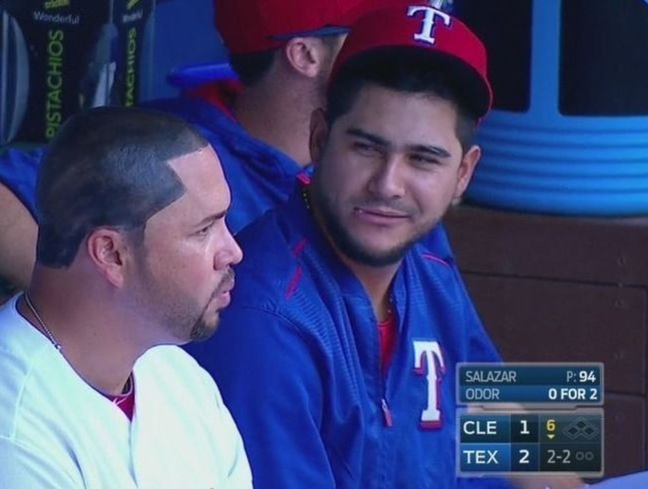 The new do caught the attention of teammate Martin Perez, who couldn't seem to look away, with Rangers broadcasters going as far as to say Beltran looked like a chia pet.