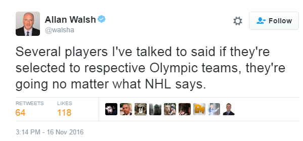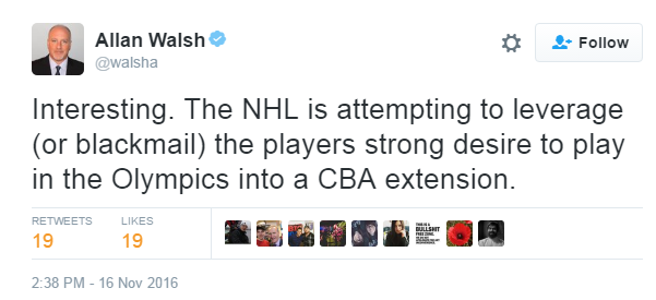 Walsh: NHL attempting to 'blackmail' players in Olympic negotiations