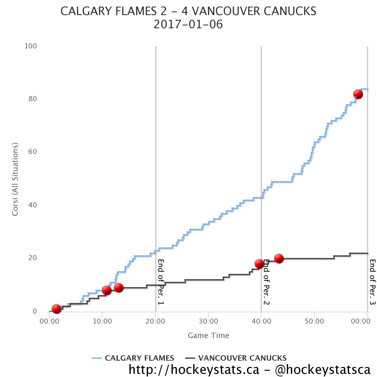 Courtesy of hockeystats.ca, this is how the Canucks' win versus the Flames looked in chart form:
