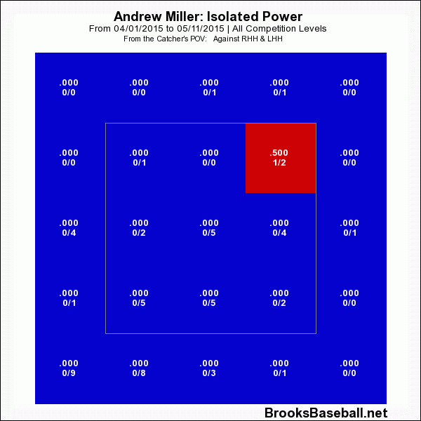 17. It doesn't matter when or what Andrew Miller throws to the opposition because they're not hitting it anyways. How dominant has the Yankees new closer been? He's thrown 15 2/3 scoreless innings to start the year with 20 strikeouts, and no team other than the Rays even has a hit off the high-priced lefty. Here's what domination looks like plotted: