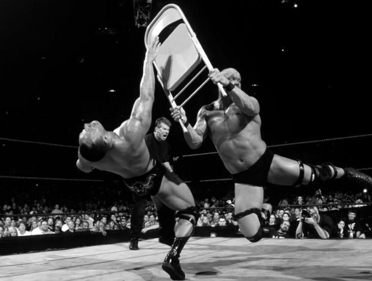 Growing frustrated in his quest to keep Rock down for a count of three, Austin recruited the assistance of WWE chairman Vince McMahon and a steel chair to decimate his opponent. With no disqualifications, it was all within the confines of the rules. An unholy alliance had been born, and a dramatic shift in Austin's character was set to begin.