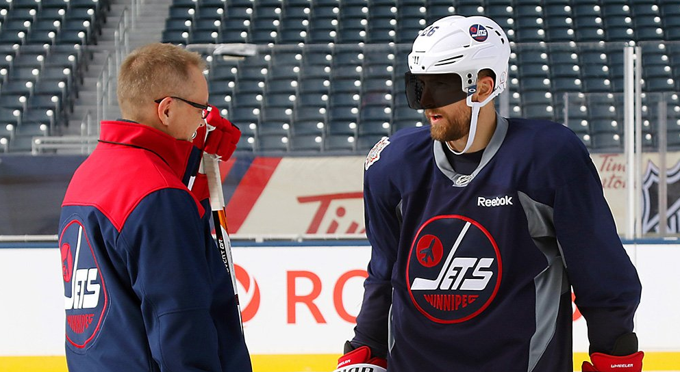 Jets forward Blake Wheeler was clearly ready to battle the sun's glare.