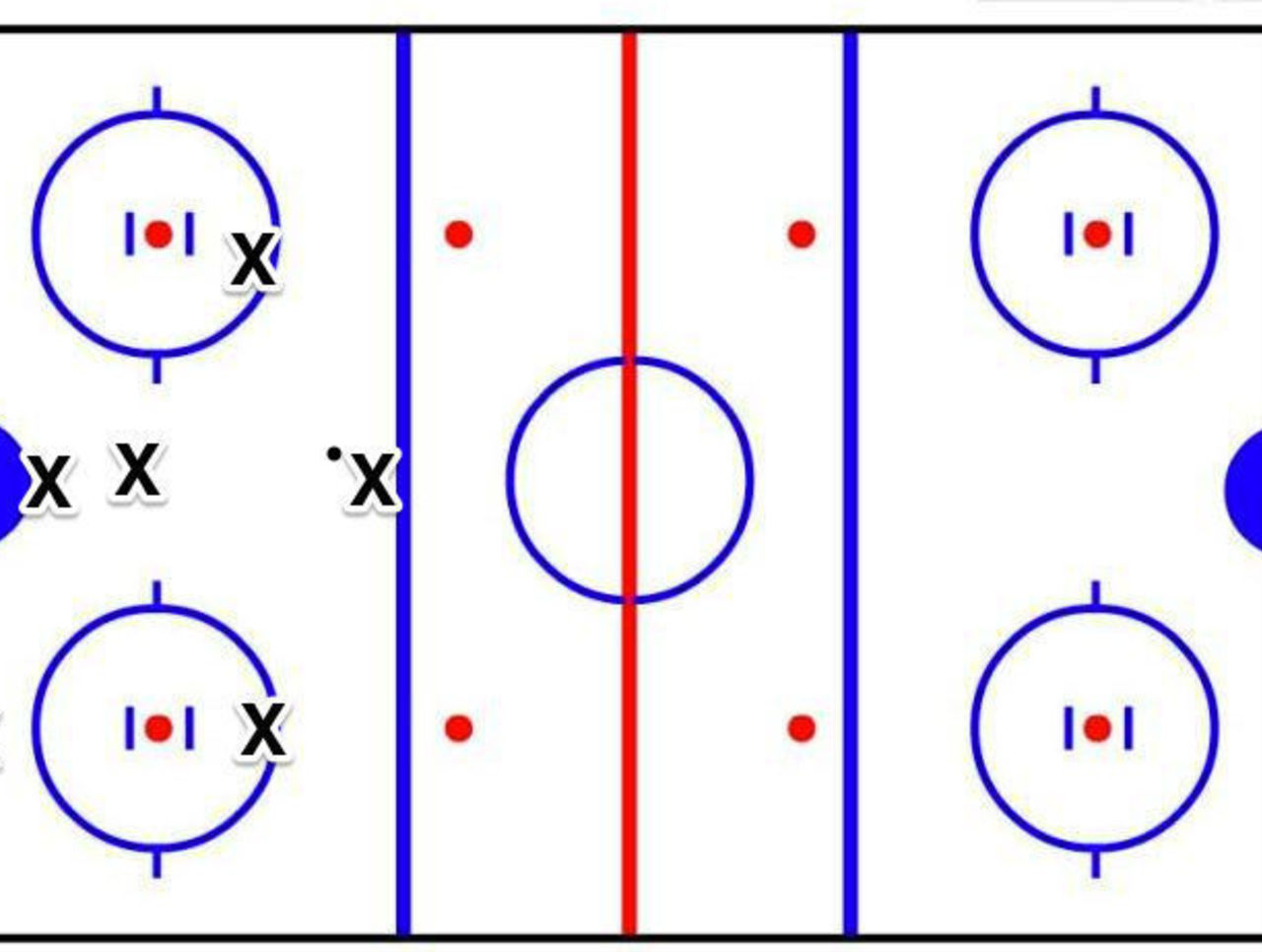 I thought I’d diagram the general set up of an offense when they get to 6-on-5 hockey, and what they’re trying to do aside from score, obviously.