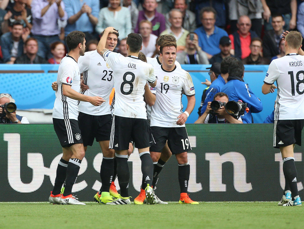 Germany starting XI: Neuer; Kimmich, Boateng, Hummels, Hector; Kroos, Khedira; Müller, Ozil, Gotze; Gomez