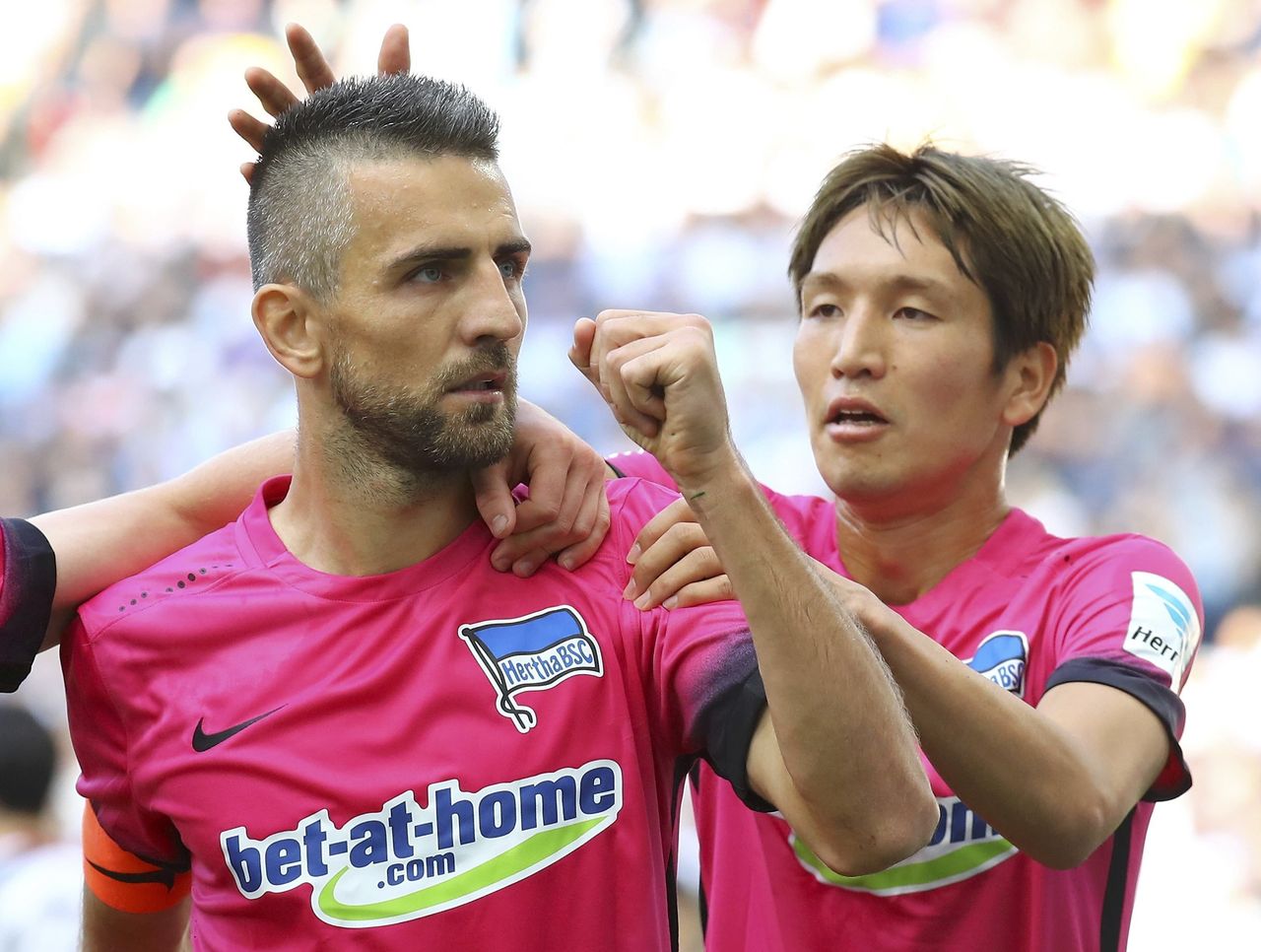 He stabbed home Hertha's opening goal on 29 minutes -- and celebrated by sticking his thumb in his mouth in tribute to his daughter -- then converted a penalty on 70 minutes to leave his side second in the table.
