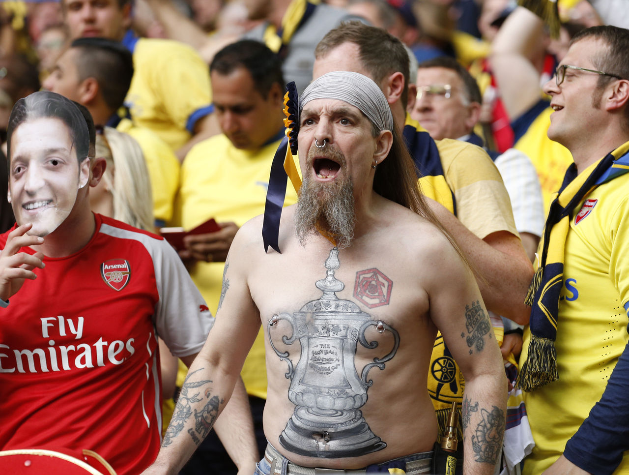 - At the other end of the social spectrum was an Arsenal supporter, going by the name Bully Arsenal, who showed up at Wembley with some glorious artwork across his chest.