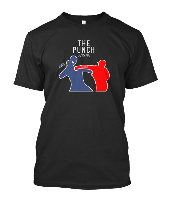 The shirt features "The Punch 5/15/16" on the front with a silhouette of Odor punching Bautista, and the phrase "#neverforget" on the back. It's being sold on Teespring for $22.99, with $1 from every sale through May 17 going to Do It For Durrett, a non-profit organization dedicated to helping families impacted by sudden loss.