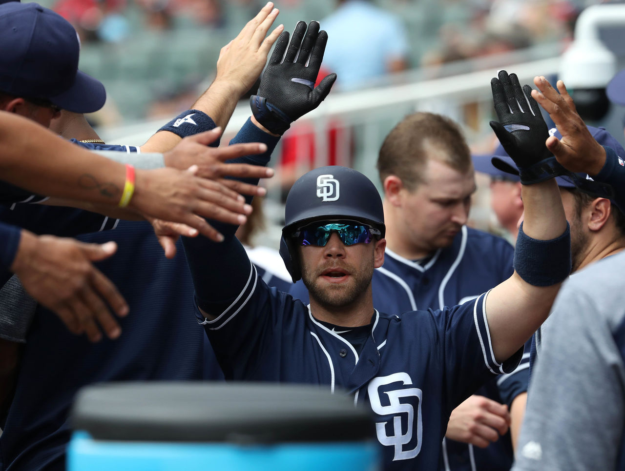 Cozart ranks 11th with a slugging percentage of .630 and 35th with a ISO of .259. He plays his home games within the hitter-friendly confines of Great American Ball Park in Cincinnati, yet he remains with just one home run on the season. Cozart's fly-ball percentage is up and his hard-contact rate is down from last season, during which he hit 16 homers.