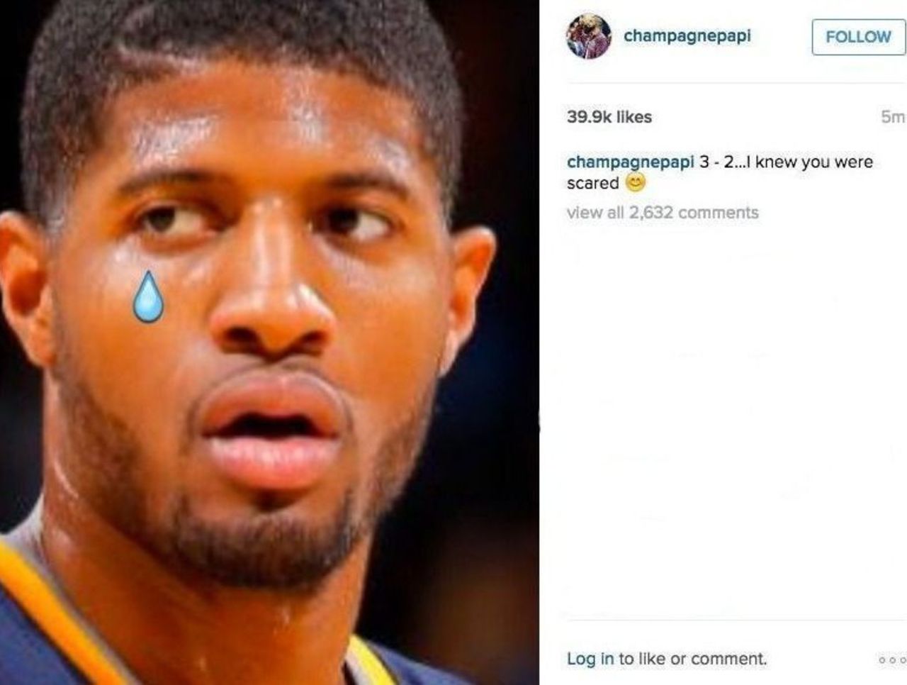 Raptors global ambassador and local rapper Drake took a shot at Paul George following the Raptors' comeback victory in Game 5, posting a picture on Instagram mocking the Pacers small forward. He eventually deleted the photograph.