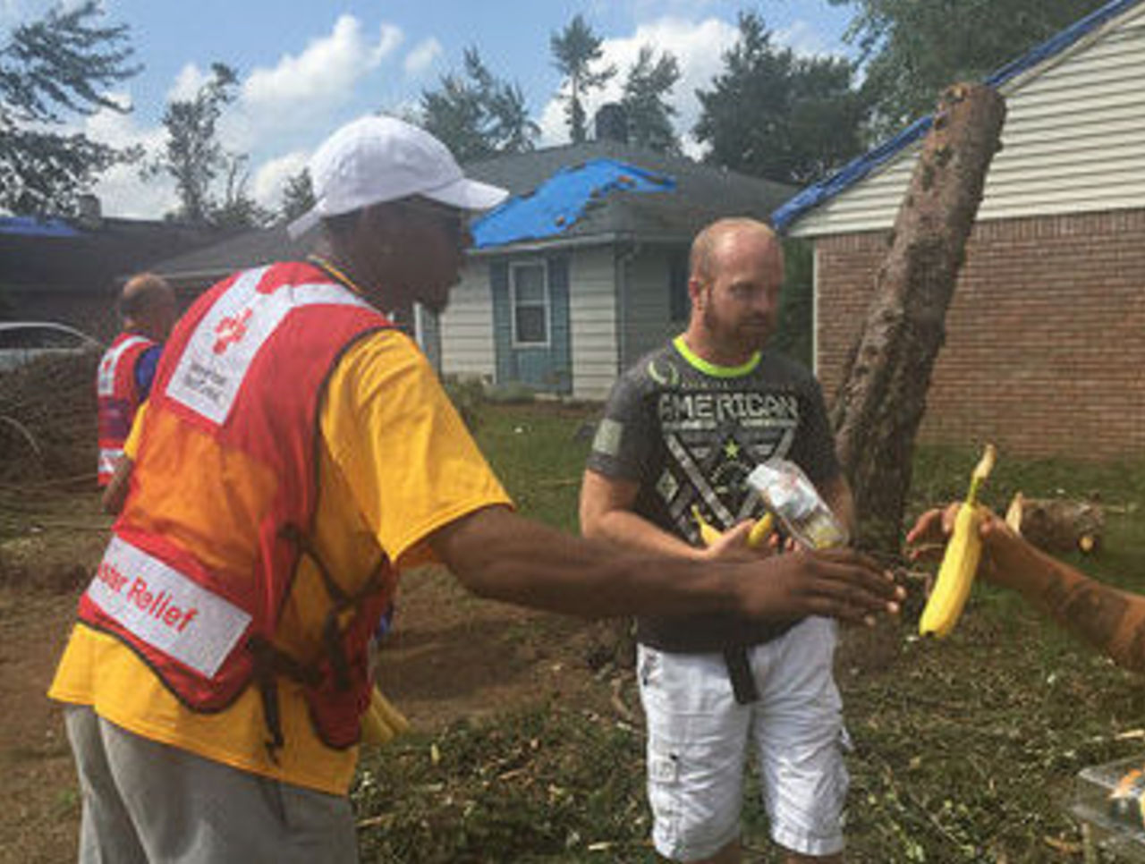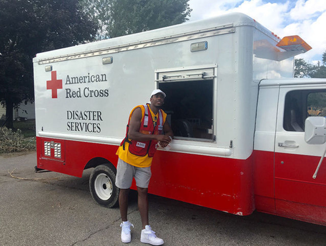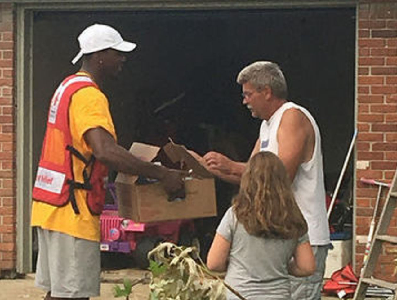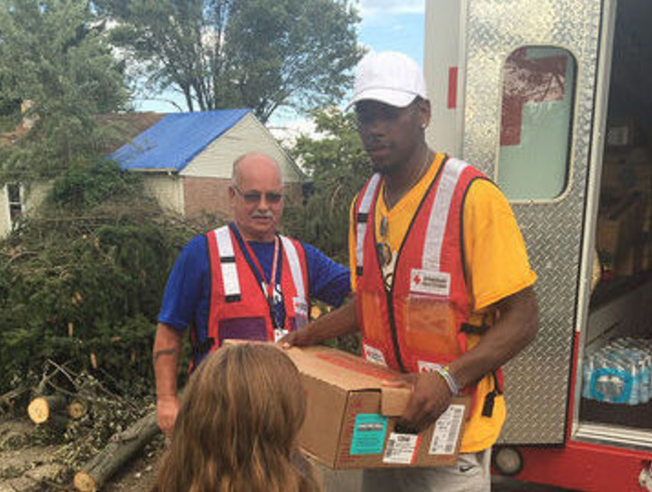 On Friday, the 22-year old from Indiana linked up with Red Cross to help distribute supplies to the residents of Kokomo, Ind. after eight tornadoes touched down in the region Wednesday, damaging many homes and local businesses.
