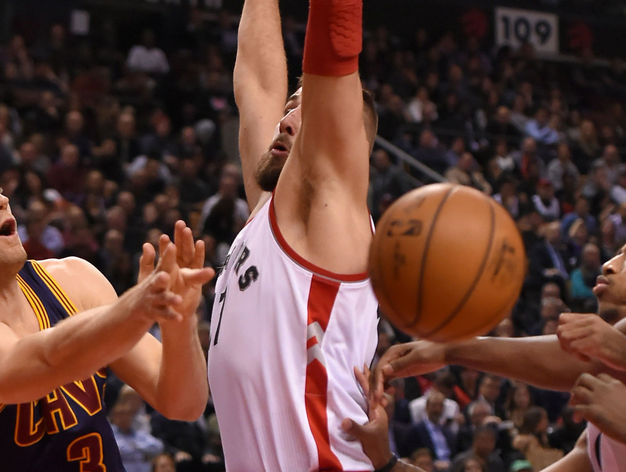 Valanciunas has always struggled trying to defend against the Cavs' zippy ball movement and stretchy front line, but he looked particularly lost in this one.
