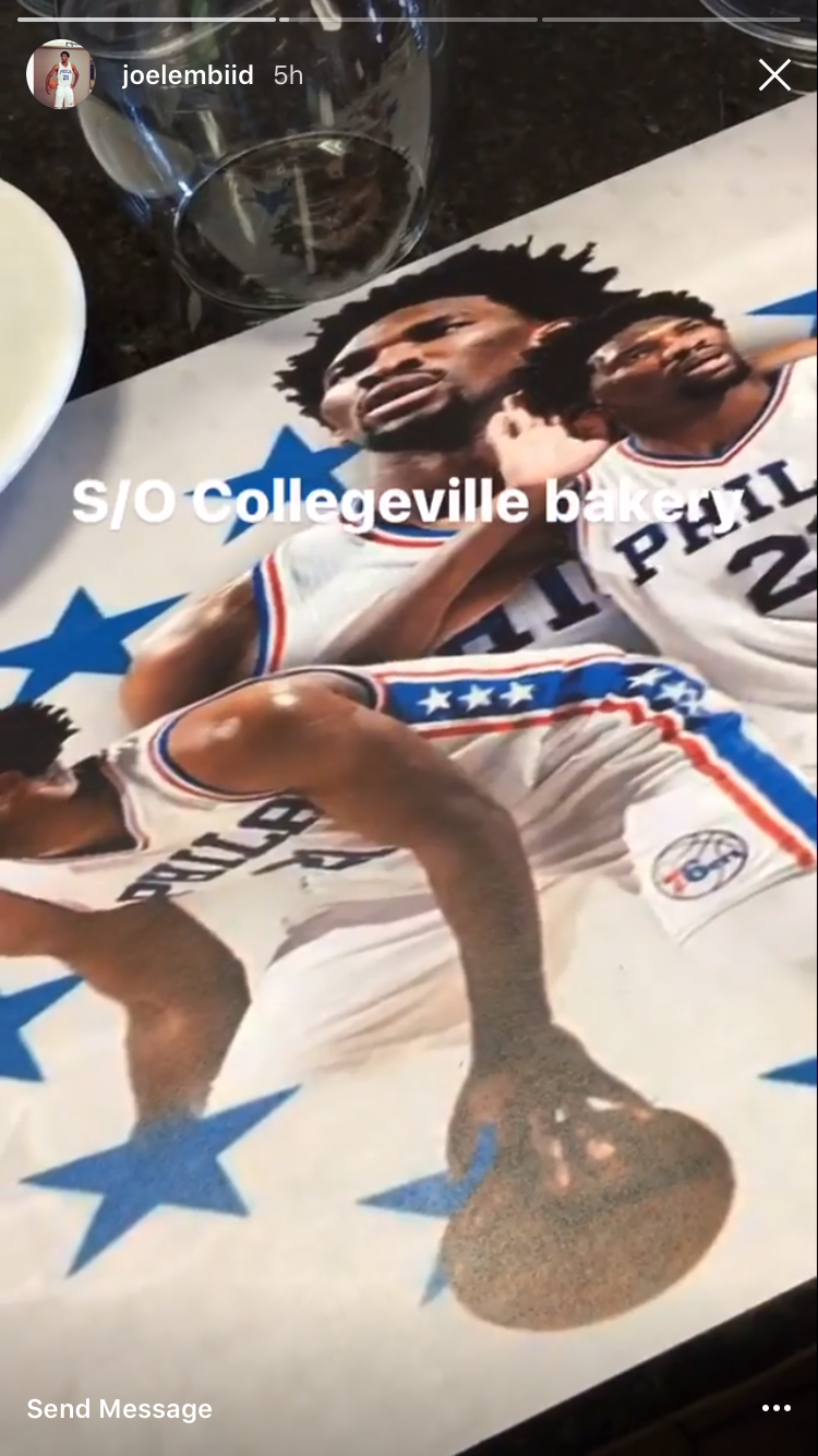 Philadelphia 76ers center Joel Embiid shared this picture Sunday of a thought-provoking sign outside Collegeville Bakery in Pennsylvania: