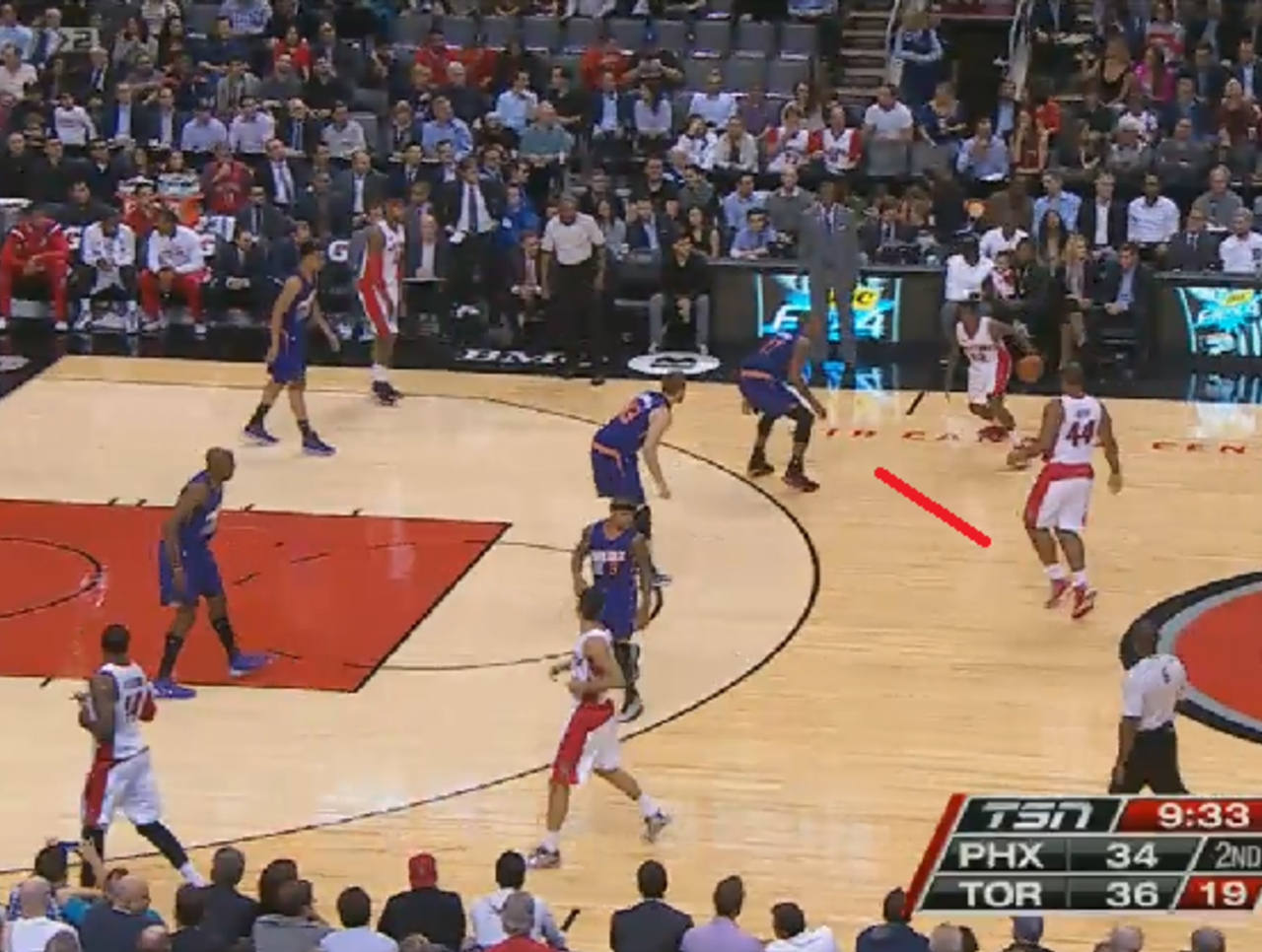 The Suns eventually got bodies into the paint to seal off Hayes, who eschewed a pass outside to hit his patented Root Beer Floater. The entire play isn't anything special tactically, but it shows how a hot scorer can bend a defense and, if willing, create easy opportunities for teammates.