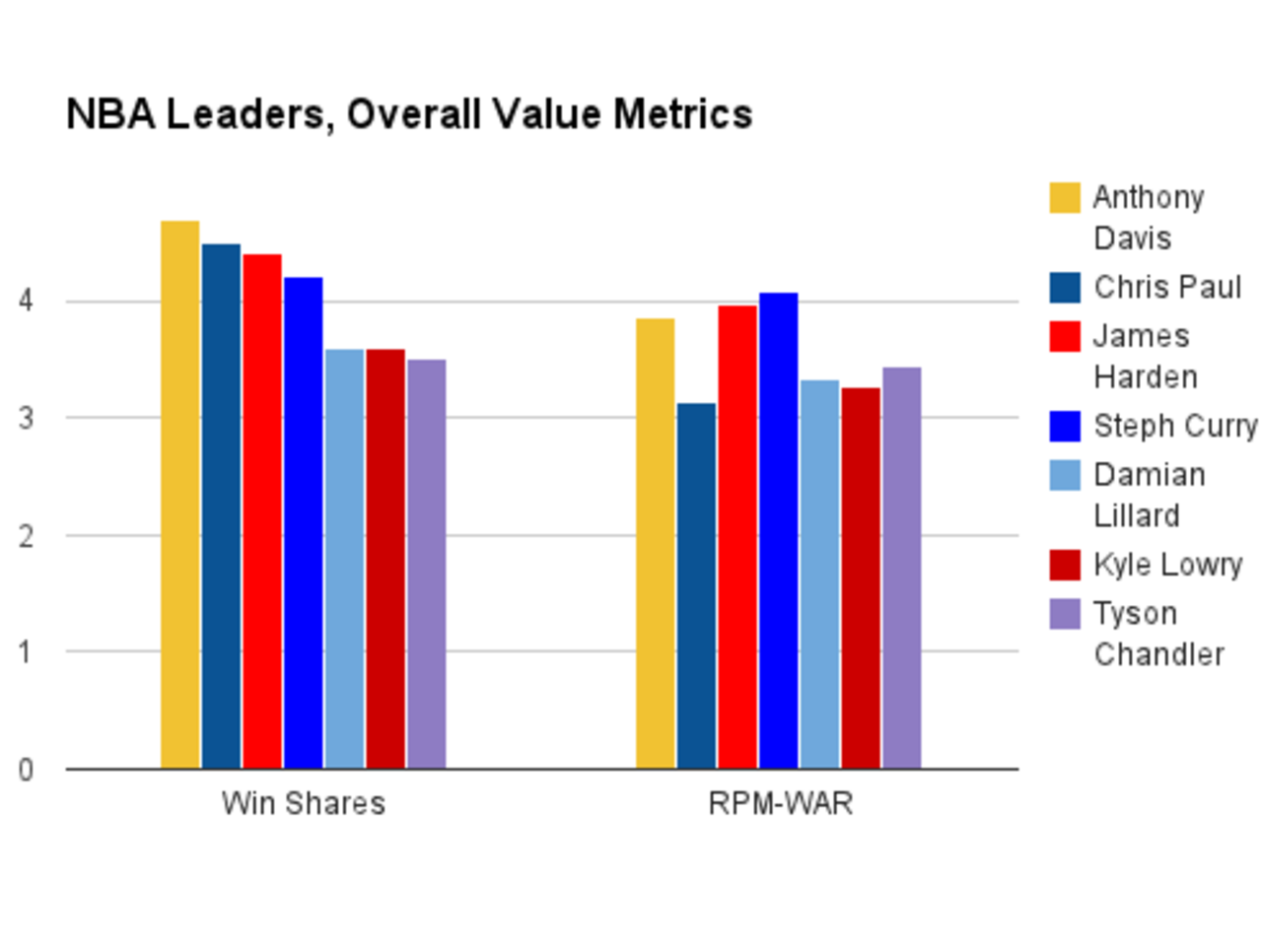 Summing up a player's production can be done a variety of ways, though none are particularly effective at this early juncture. Still, those metrics provide some insight and the two most cited catch-alls, Basketball Reference's Win Shares and ESPN's Real Plus Minus, rank Harden as a top-three player so far.
