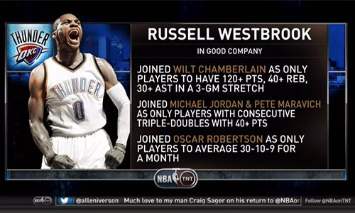 As if that TNT graphic of biblical proportions wasn't enough, Westbrook then put together a 43-point, eight-rebound, seven-assist performance in Thursday's loss to the Bulls.