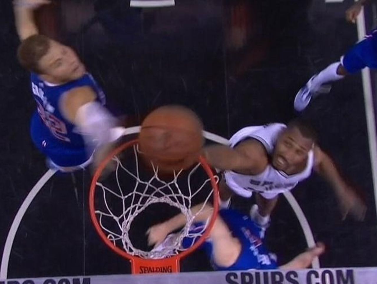 This time, it was Boris Diaw trying to tap in a Marco Belinelli miss and Griffin swatting it away. Diaw was called for interference but because he had touched the ball first, inside the cylinder, it was offensive, not defensive, basketball interference.