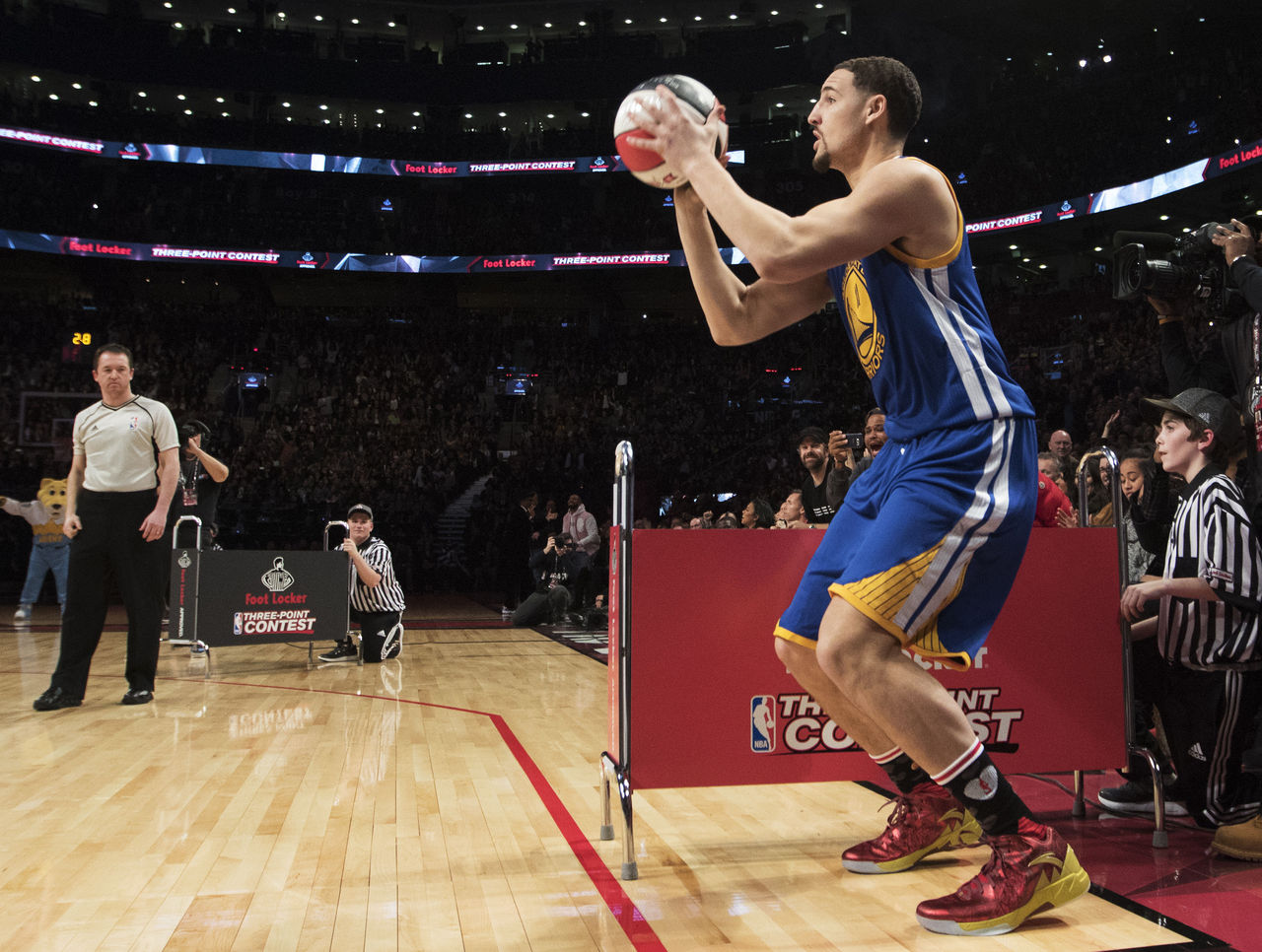 Stephen Curry left the Barclays Center in 2015 hoisting the Three-Point Contest trophy above his head, having convincingly thwarted the efforts of teammate Klay Thompson and Cleveland Cavaliers guard Kyrie Irving. Fast forward one year later, and both Curry and Thompson were back in the finals - only this time, it was Thompson soaking in all the glory with a commanding finale north of the border.