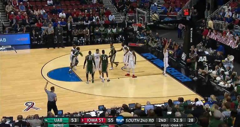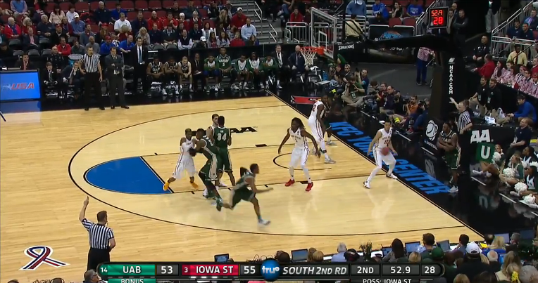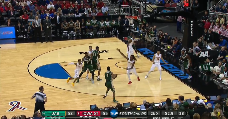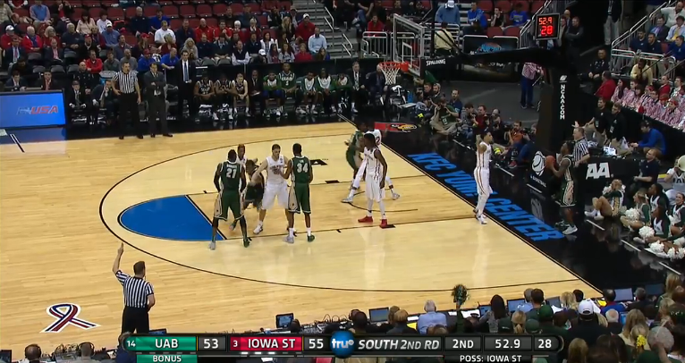 That shot made it 56-55 for UAB. After Monte Morris took the lead back for Iowa State, UAB ran a simple high pick-and-roll that ultimately ended with William Lee coming open and then working himself a pull up left-elbow jumper for a lead the Blazers would never give up.