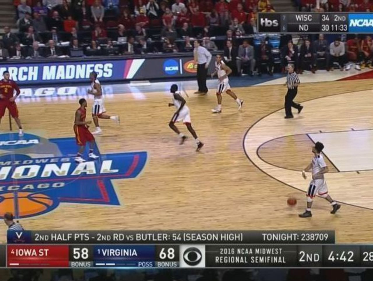 PHOTO: Broadcast error says Virginia scored 238,709 points in 2nd half