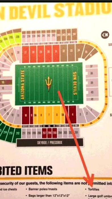 Security at Arizona State's Sun Devil Stadium takes their jobs very seriously, and in an effort to make sure nobody is upset or hurt they have instituted a rule banning tortillas from the premises.