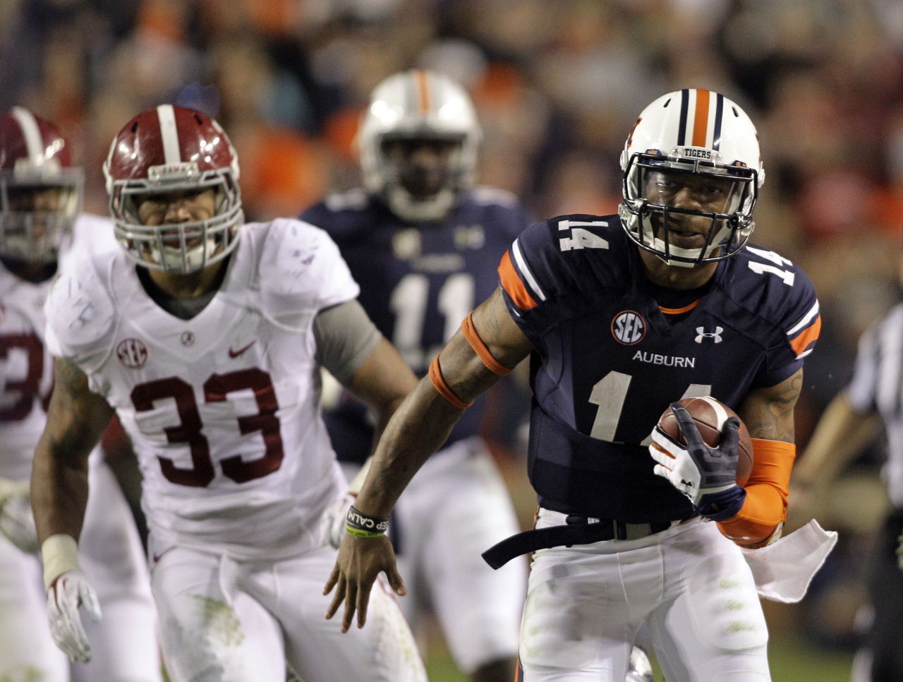 If the Crimson Tide can knock off LSU, than the only thing standing between them and the SEC championship game will be the Iron Bowl. Last season's game was an instant classic with Auburn winning 34-28 on Chris Davis' 109-yard missed field goal return with no time left. While the 2014 Iron Bowl is unlikely to have as incredible a finish, it's probably the most anticipated game of the season.