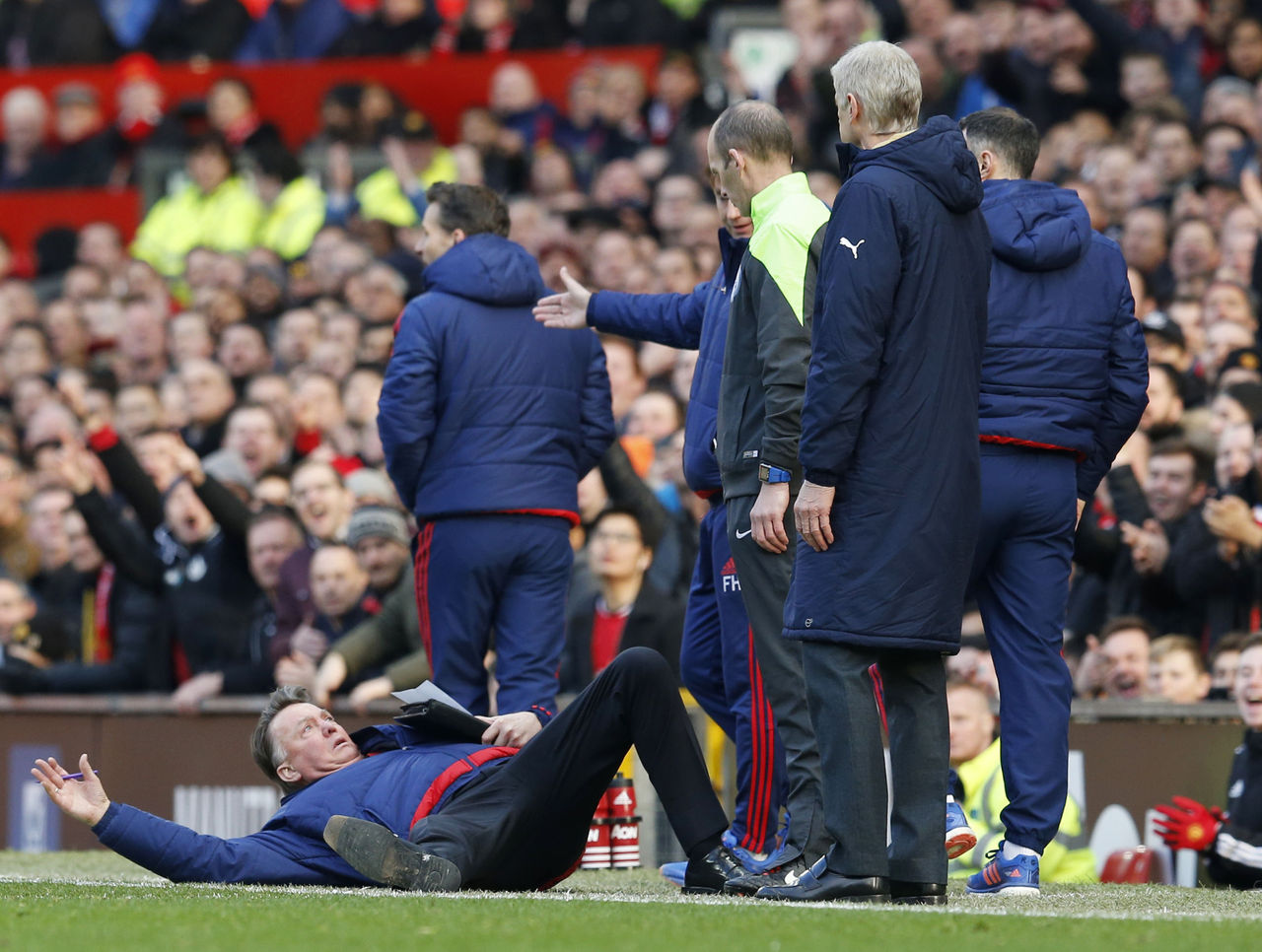 Louis van Gaal's relationship with United supporters has never been greater than it was on this day in late February when, while remonstrating with fourth official Mike Dean over what he perceived as a dive by Alexis Sanchez, the Dutch gaffer threw himself to the ground in an attempt to mimic the Chilean's antics.