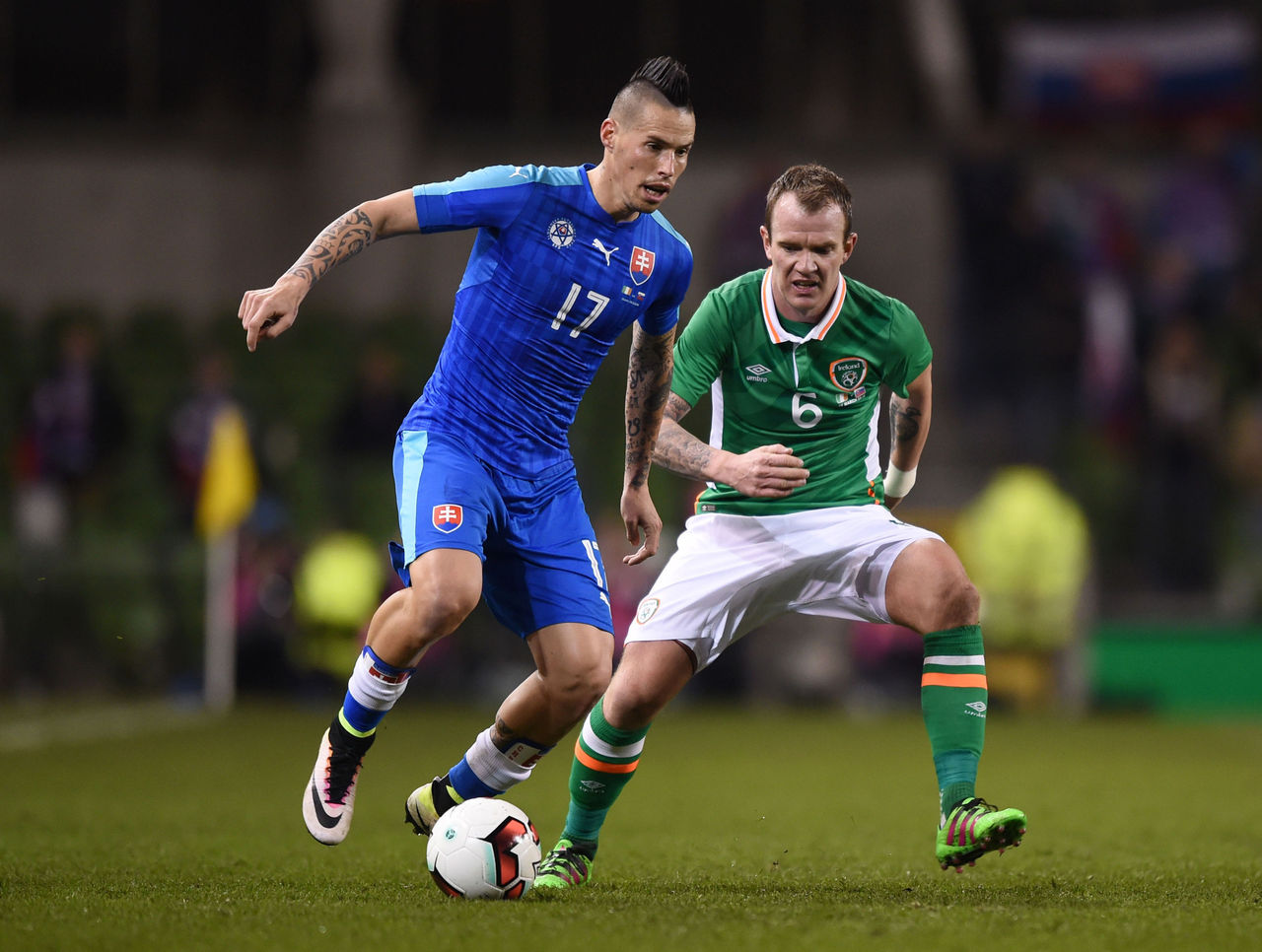 It feels as if Marek Hamsik and his questionable shark fin haircut have been around forever, but the predatory passer is still just 28. He links up with Slovakia off the back of arguably his best season with Napoli yet, scoring just six goals but adding 11 assists for the only team that looked capable of troubling Juventus' relentless charge for Serie A honours.