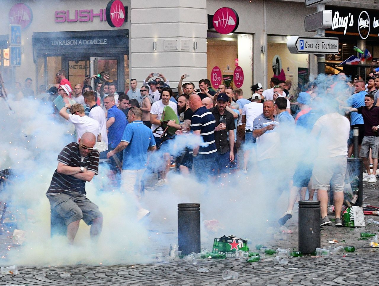 England fans in Marseille ahead of Saturday's contest against Russia clashed with local police for a second consecutive day, with tear gas deployed to subdue a crowd that was described as "quite menacing."