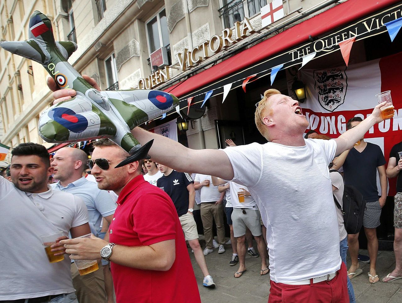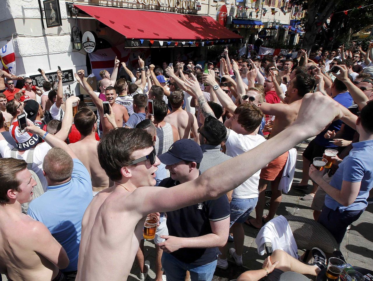 The night ended with hundreds of boozed-up and bare-chested fans stood, beer glasses in hand, staring down French CRS riot police on the other side of the street.