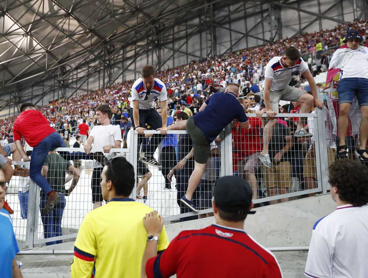 Meanwhile, the English Football Association has not been charged by UEFA over Saturday's violence inside the Stade Velodrome, where a large group of Russian spectators overwhelmed security before randomly attacking fans and forcing many fans with English shirts to flee the stadium.