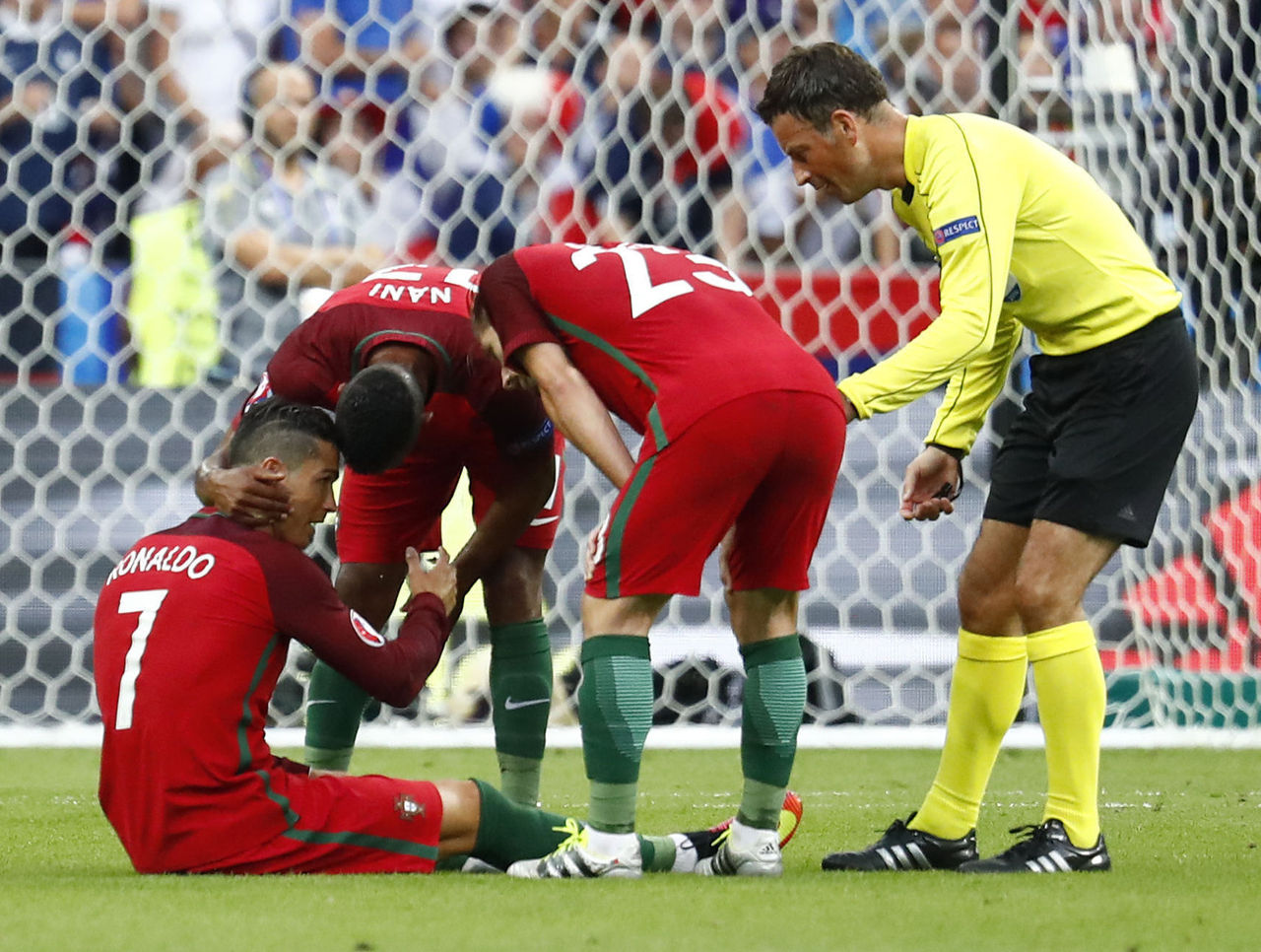 It all started just around eight minutes into the match, as France winger Dimitri Payet collided with Ronaldo, bringing the Portugal captain to the ground, wincing in pain.