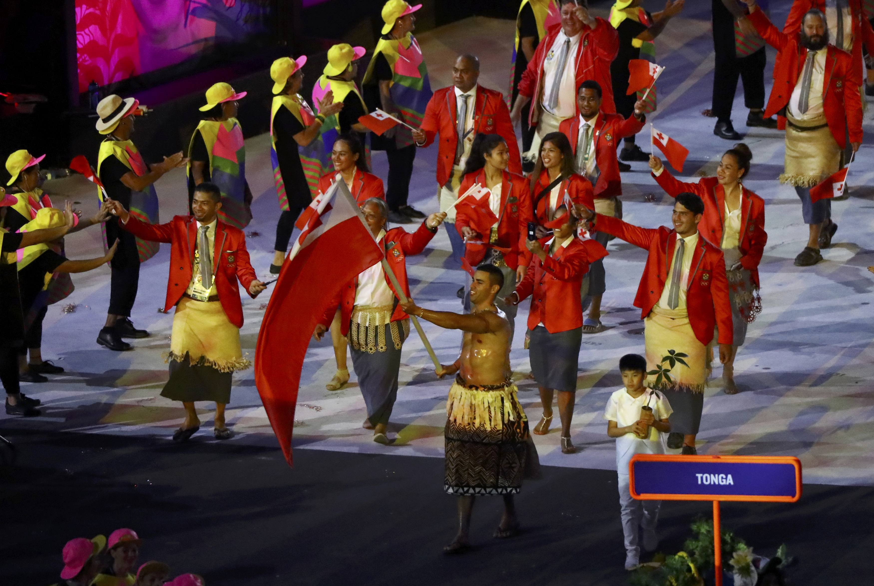 Moving to Tonga. Their national dress is a six pack covered in baby oil. #OpeningCeremony