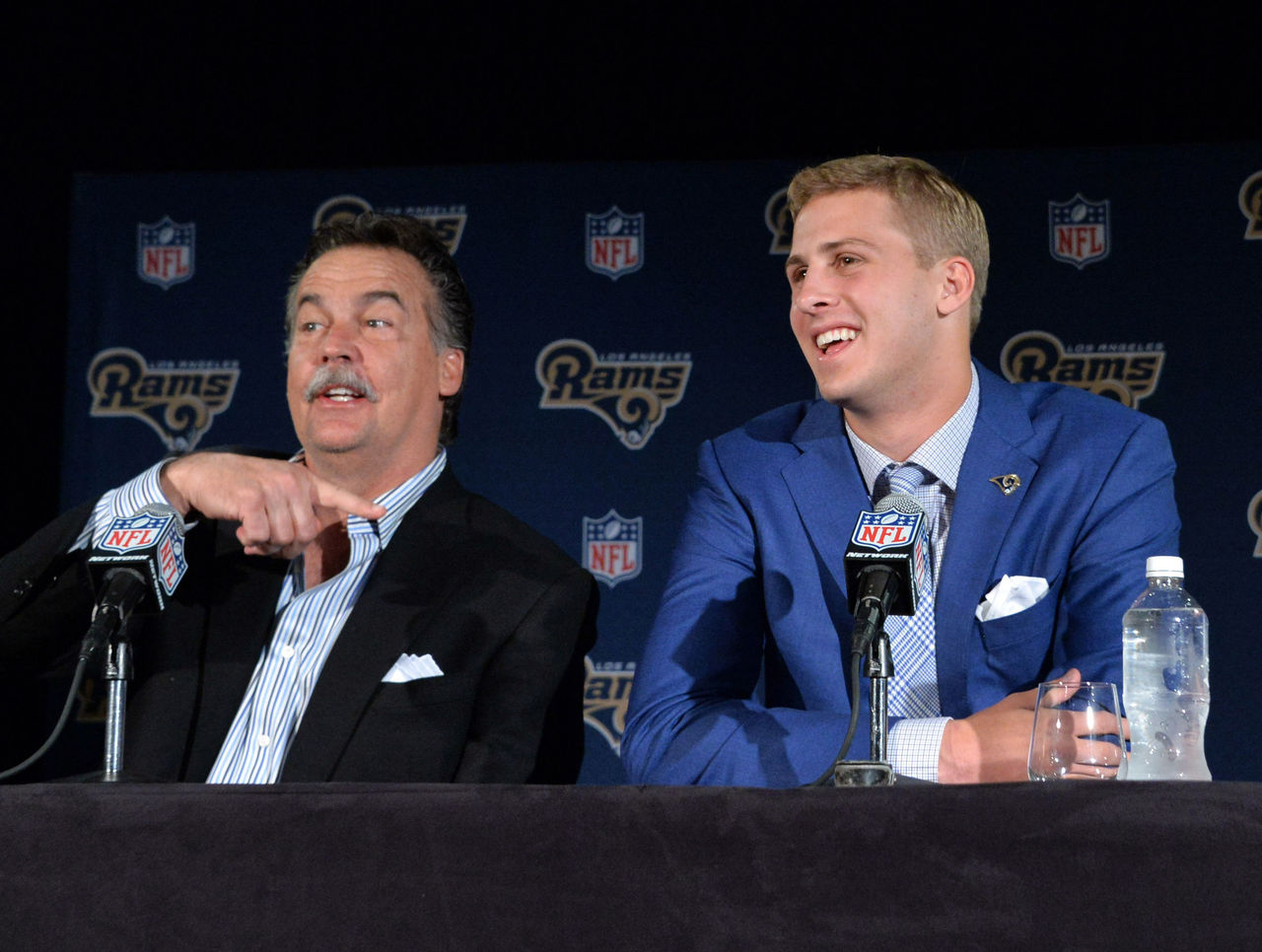 What may define his Rams legacy, though, is Fisher's blockbuster trade up to select Jared Goff with the first overall pick in the spring's draft. Goff is the first quarterback selected first overall who hasn't started in Week 1 since JaMarcus Russell, and there are whispers he won't be ready to see the field as a rookie.