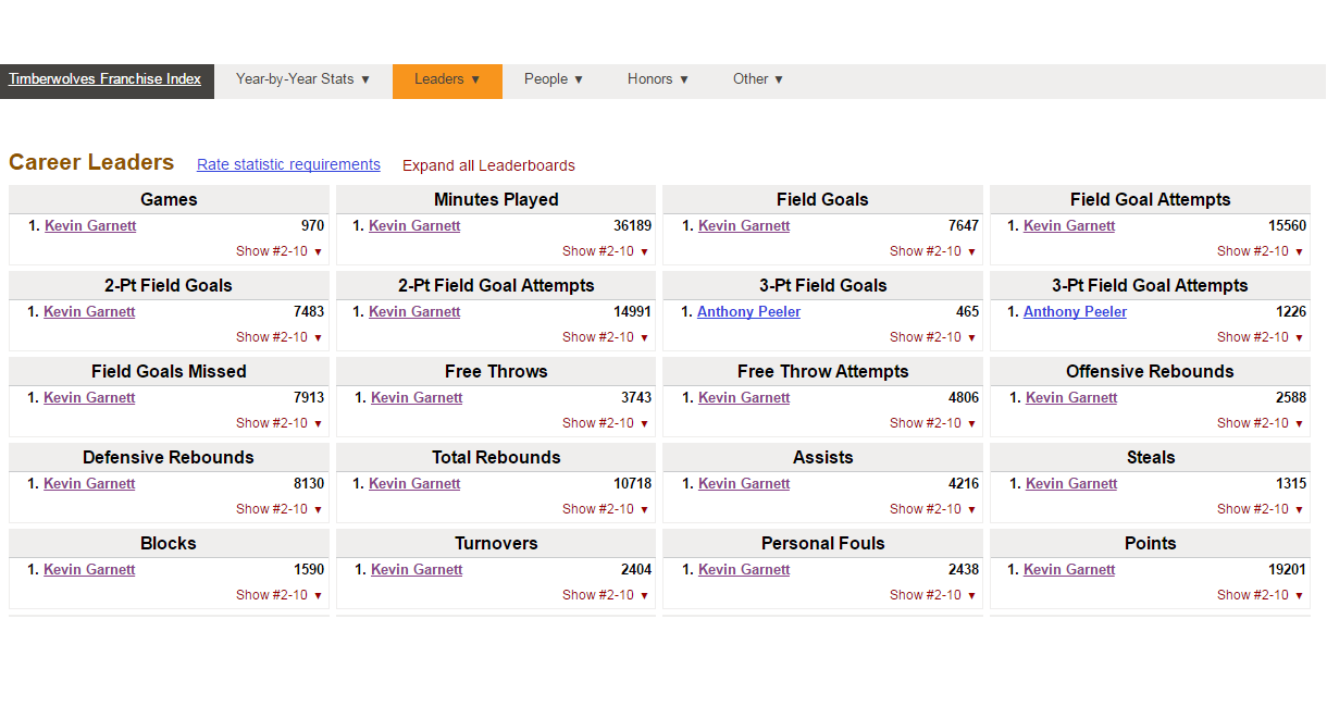 The surefire Hall of Famer has played parts of 14 seasons in Minnesota, where he's averaged 19.8 points, 11 rebounds, 4.3 assists, 1.4 steals, and 1.6 blocks; been named an All-Star 10 times; made eight All-NBA teams and eight All-Defensive teams; and won the 2003-04 MVP. He is the franchise leader in just about every conceivable statistical category.