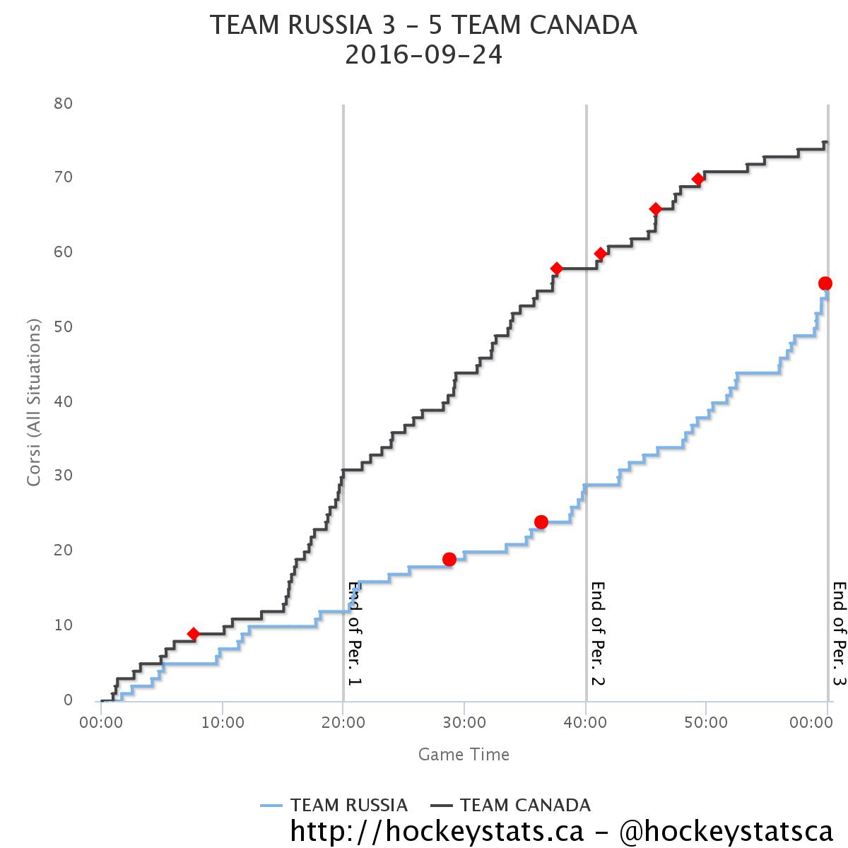 Russia floundered through another first-period power play and then killed three penalties of its own, but Canada's 1-0 lead after 20 minutes wasn’t all that unexpected. Heading into the semifinals, the host nation had outscored the opposition 8-1 in first periods at the World Cup, while Russia had failed to hit the back of the net in the opening frame.