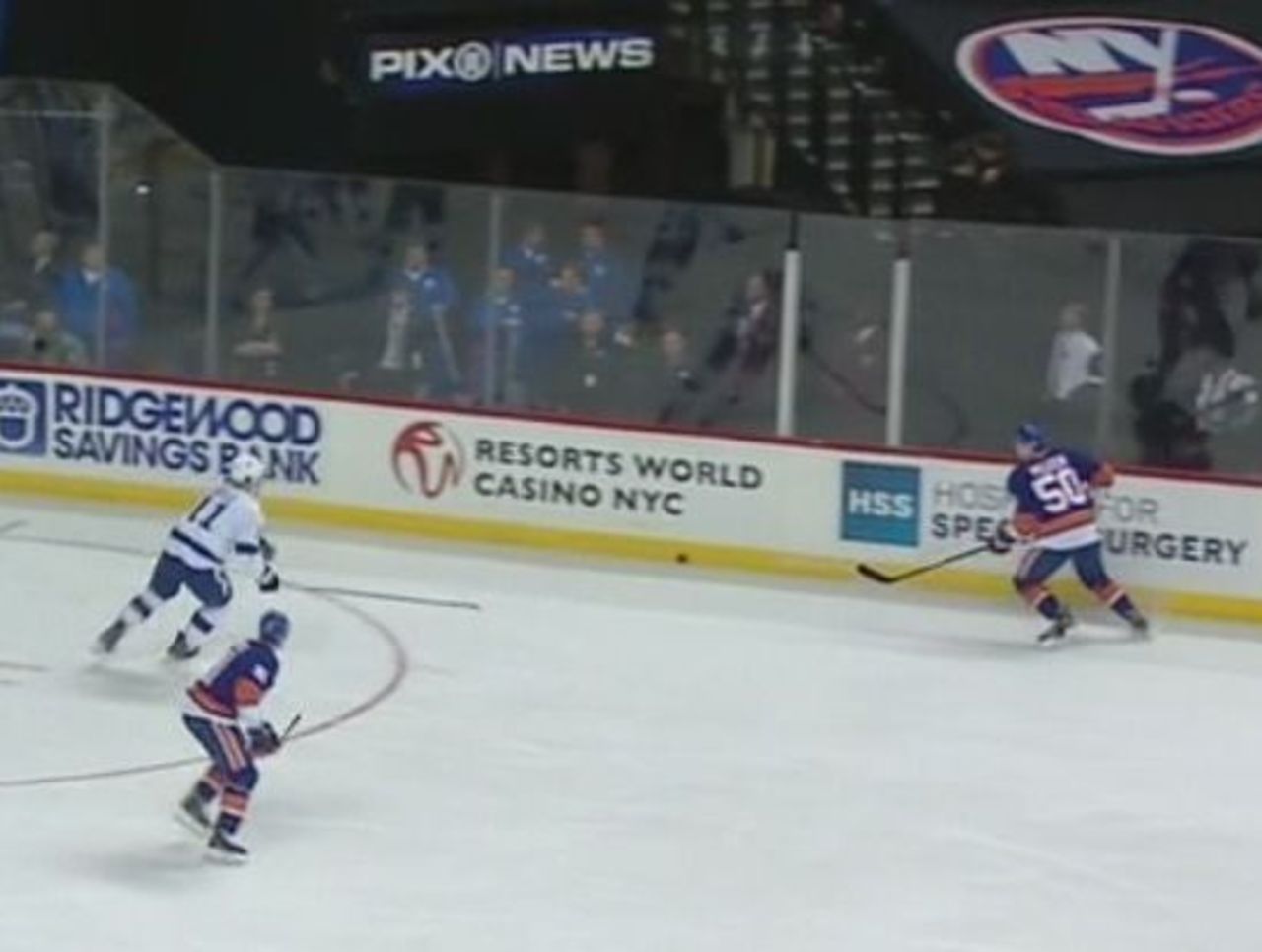 Adam Pelech (50) stood ready to accept the pass, with Brian Boyle (11) looking to pounce.