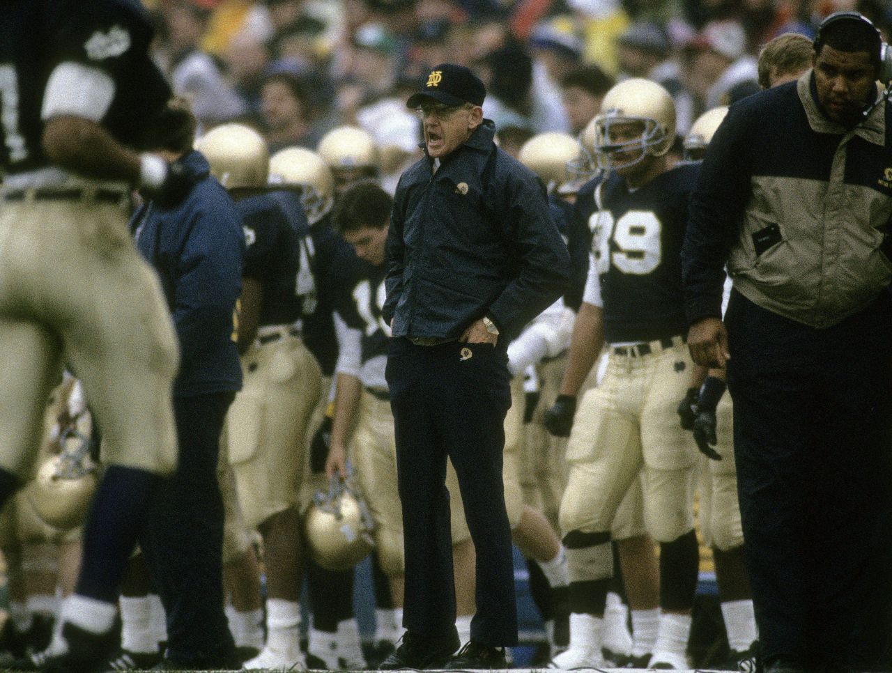 Fighting Irish head coach Gerry Faust announced he would resign at the end of the season, after taking a 5-5 record into the game with Miami. The Hurricanes were ranked No. 4 and destined for the Sugar Bowl, and showed no mercy for Notre Dame or Faust, handing the Irish a 58-7 loss - one of the worst defeats in Irish history. Many accused Canes coach Jimmy Johnson of running up the score, while others countered that Notre Dame had been doing the same for years.