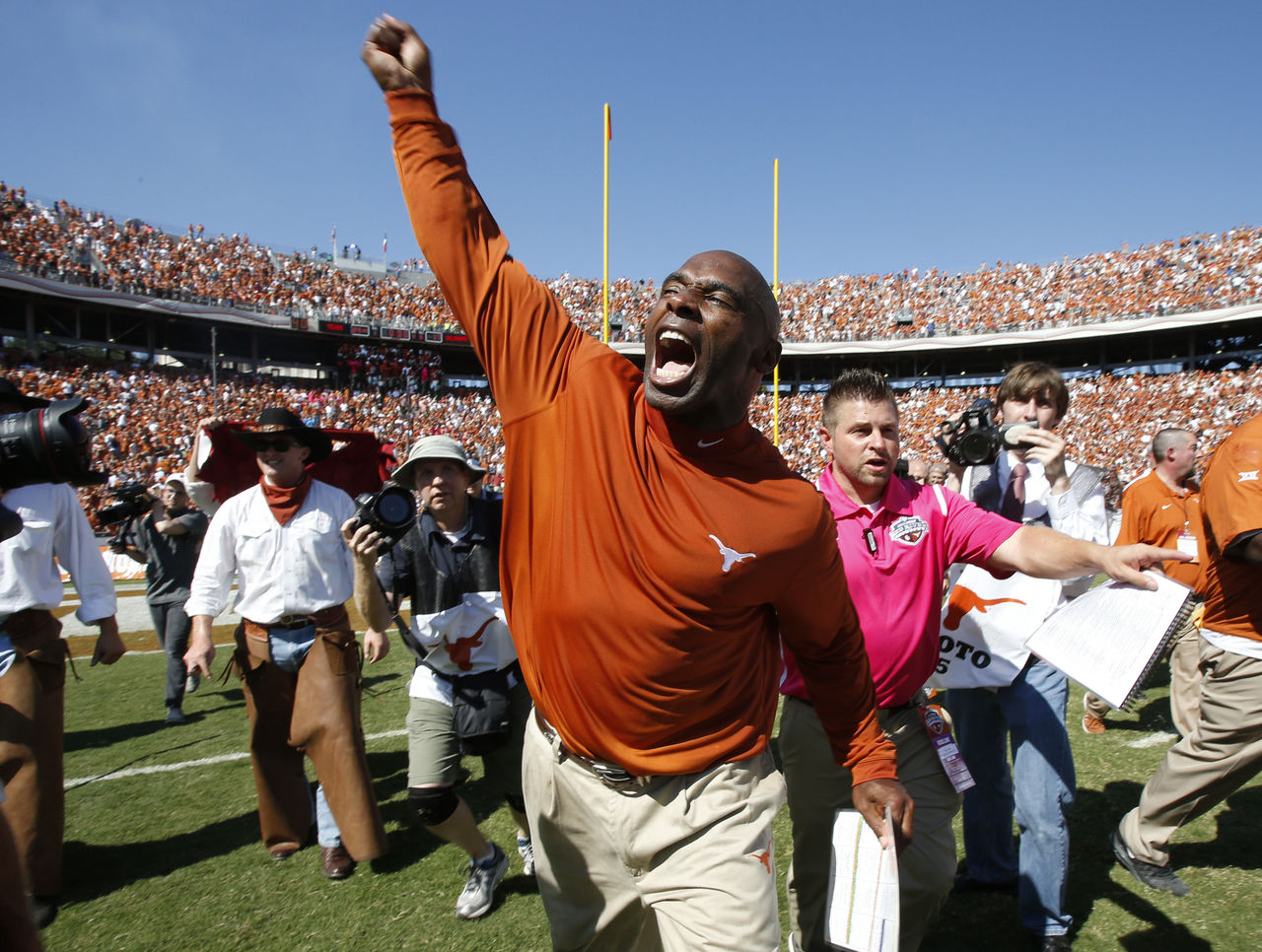 Eventually, Strong and his turtlenecks knew they were running out of time. In a last-ditch effort to potentially save his job, he wore the orange turtleneck Friday night against TCU, but to no avail. The Longhorns lost the game, and Strong lost his job the next day.