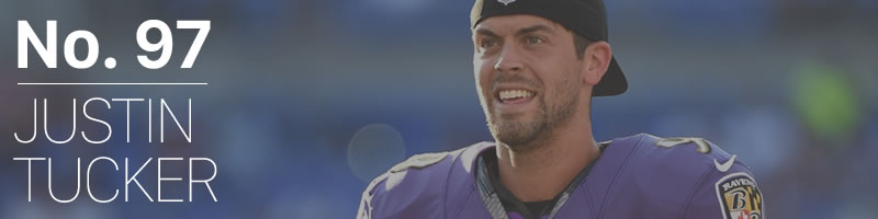 It's rare for a kicker to earn top-100 consideration, but Tucker was so much better than his peers in 2016 that he forced his way onto this list. His stats speak for themselves: 38-of-39 (with his only miss a blocked kick where the defender leaped over the line at the snap) with an NFL-record 10 field goals from 50-plus. - Woods