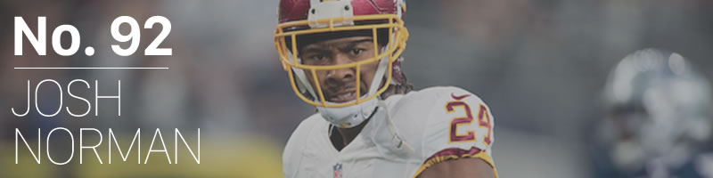 Norman may not have captured as many headlines in 2016, but his play was still a nuisance to any receiver he faced. The always vocal coverman finished tied for fifth in the league in passes defensed while leading the Redskins' defense in snaps. - Boone