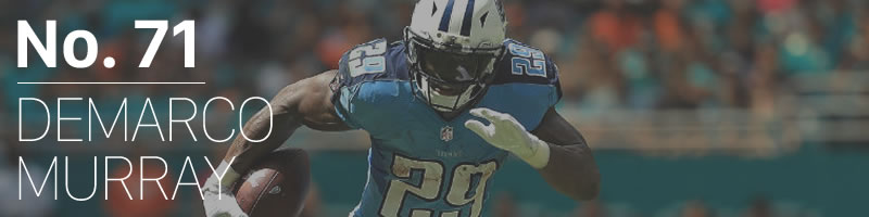 Murray was paramount to the Titans' offensive philosophy and proved again that he's one of the NFL's elite running backs. Paired with an excellent offensive line, his power, speed, and vision were on full display, as the prototypical power back bowled defenders into the dirt. Murray was certainly reinvigorated after a down year in Phiadelphia, much to the chagrin of linebackers everywhere. - Srinivasan