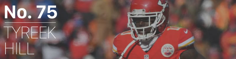 Hill may be the NFL's fastest player in the open field, adding a layer of explosiveness that was previously missing in Kansas City. The rookie emerged as a dynamic receiver, rusher, and returner, and is steadily evolving into the league's most well-rounded weapon. Hill sports the potential to score every time he's given the ball, breathing life into a conservative scheme. - Srinivasan