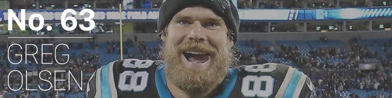 Carolina's Super Bowl hangover shouldn't do anything to overshadow another strong year from Olsen. In becoming the first tight end in NFL history to record three consecutive 1,000-yard seasons, meanwhile stretching his start streak to 80 games, Olsen made a case as the NFL's most reliable player at the position. - Wilkins