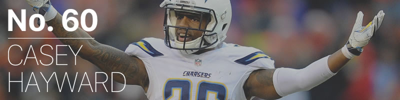 Hayward proved the Packers were foolish to let him go in free agency, delivering a stellar season in San Diego. In addition to his shutdown coverage from every corner position, including the slot, Hayward led the league in interceptions. - Boone