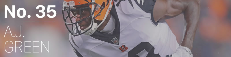Has there ever been a star receiver more overlooked than Green? Despite missing the final six games of the year with a hamstring injury, the Bengals star still managed to come within 37 yards of a sixth consecutive 1,000-yard season to open his career. The only receiver in NFL history who's accomplished that feat: Randy Moss. - Wilkins