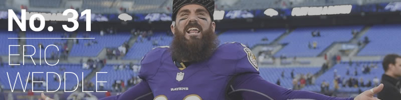 The Chargers letting Weddle move on last offseason was confusing enough at the time. One year later, it's downright astonishing. The veteran defensive back showed no signs of slowing down throughout his first year in Baltimore, posting his highest interception total since 2011 while leading a seventh-ranked Ravens defense. - Wilkins