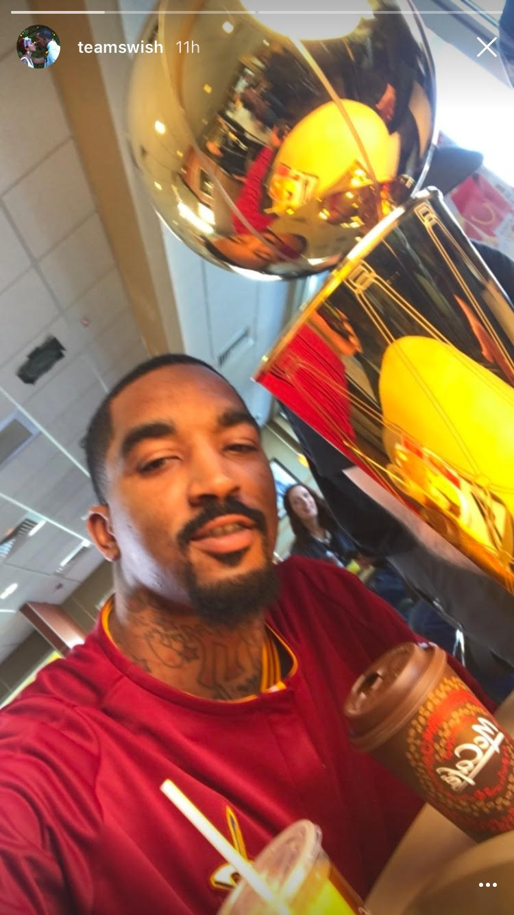 J.R. Smith brings Larry O'Brien Trophy to McDonald's