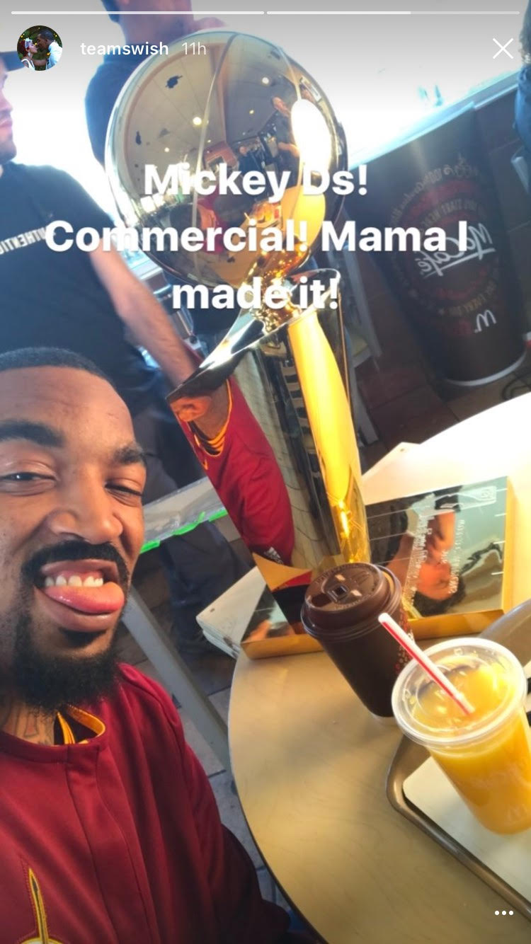The Cleveland Cavaliers shooting guard took the Larry O'Brien Trophy on a trip to a very special place: McDonald's.