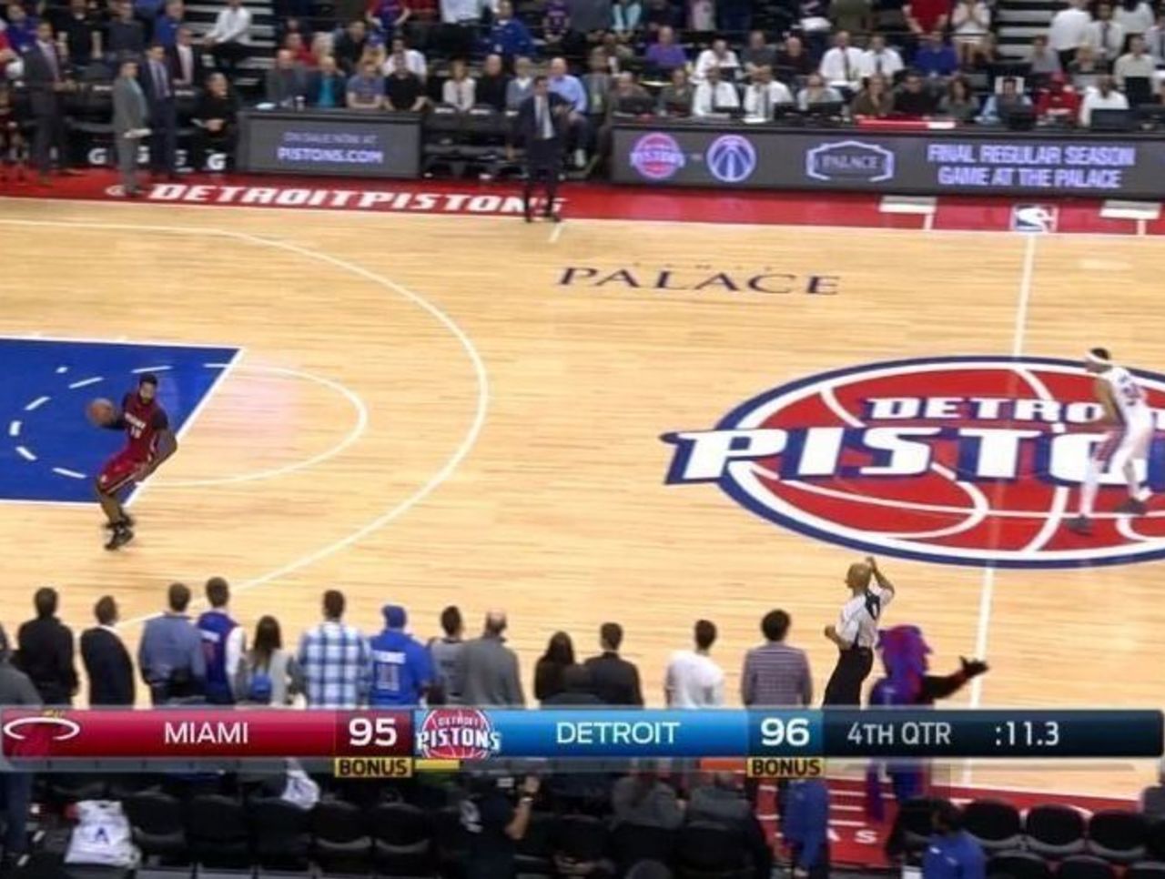 The Heat inbounded from Detroit's end deep into their own backcourt, where James Johnson gathered the ball and raced undeterred back into Detroit's end.